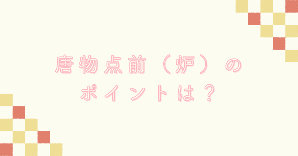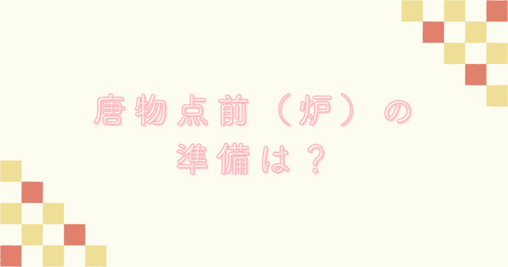 唐物点前(炉)の準備は、水屋と席入り前での内容をまとめています。
