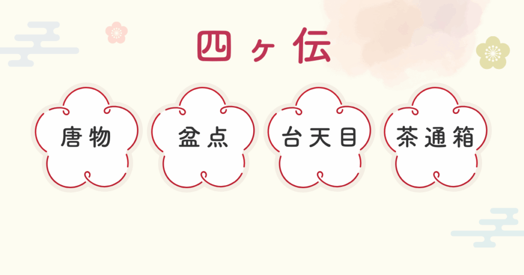 四ヶ伝は、「唐物」「盆点」「台天目」「茶通箱」があります。